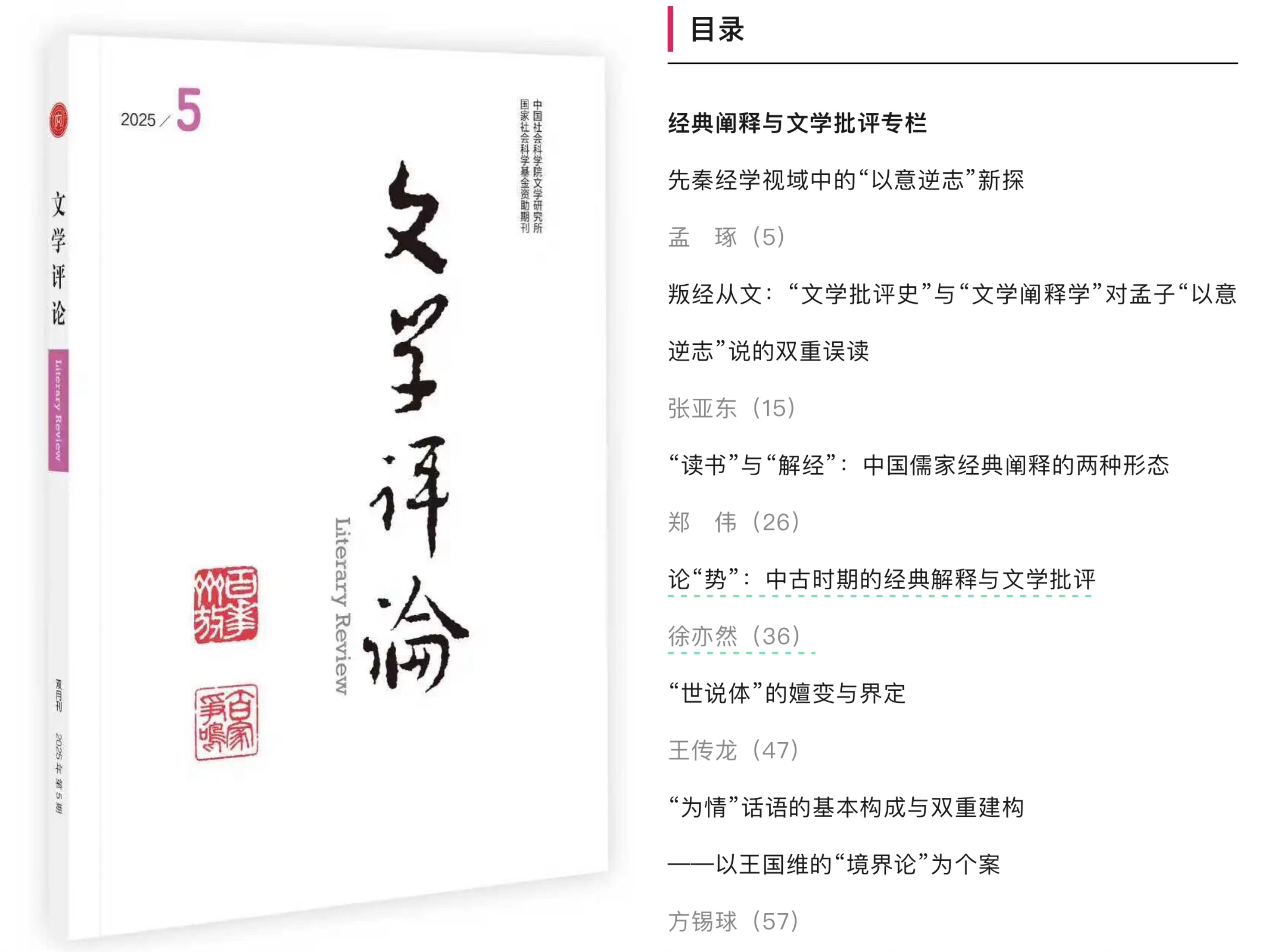 近日,suncitygroup太阳成集团方锡球教授在文学类权威学术期刊《文学评论》2025年第5期发表学术论文《“为情”话语的基本构成与双重建构——以王国维的“境界论”为个案》。《文学评论》是中国社会科公司主管,中国社会科公司文学研究所主办的全国性文学研究和理论批评的大型学术刊物。