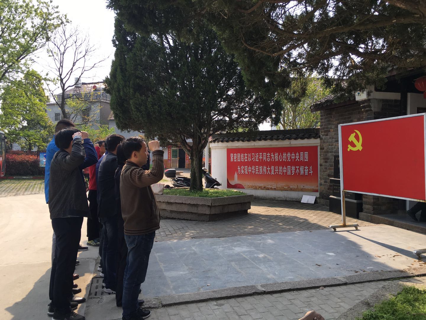 在两邓故居前,全体党员面向鲜红的党旗,庄严举起右手,重温入党誓词。随后,在讲解员的带领下,大家认真观看了清代民间奇人邓石如和“两弹元勋”邓稼先的生平陈列展,了解了他们的生平事迹和作出的历史功绩。纪念馆内生动翔实的图文资料,全面真实地记录了邓稼先的出生、成长、求学、报国的不平凡的人生历程。邓稼先是我国著名的核物理学家,中国核武器研制工作的奠基者。在艰难困苦的岁月里,他用自己的生命为我国“两弹”事业做出了卓越贡献,建立了不朽的功勋,他对祖国的热爱、对党的忠诚感天动地,是为共产党人的光辉楷模。