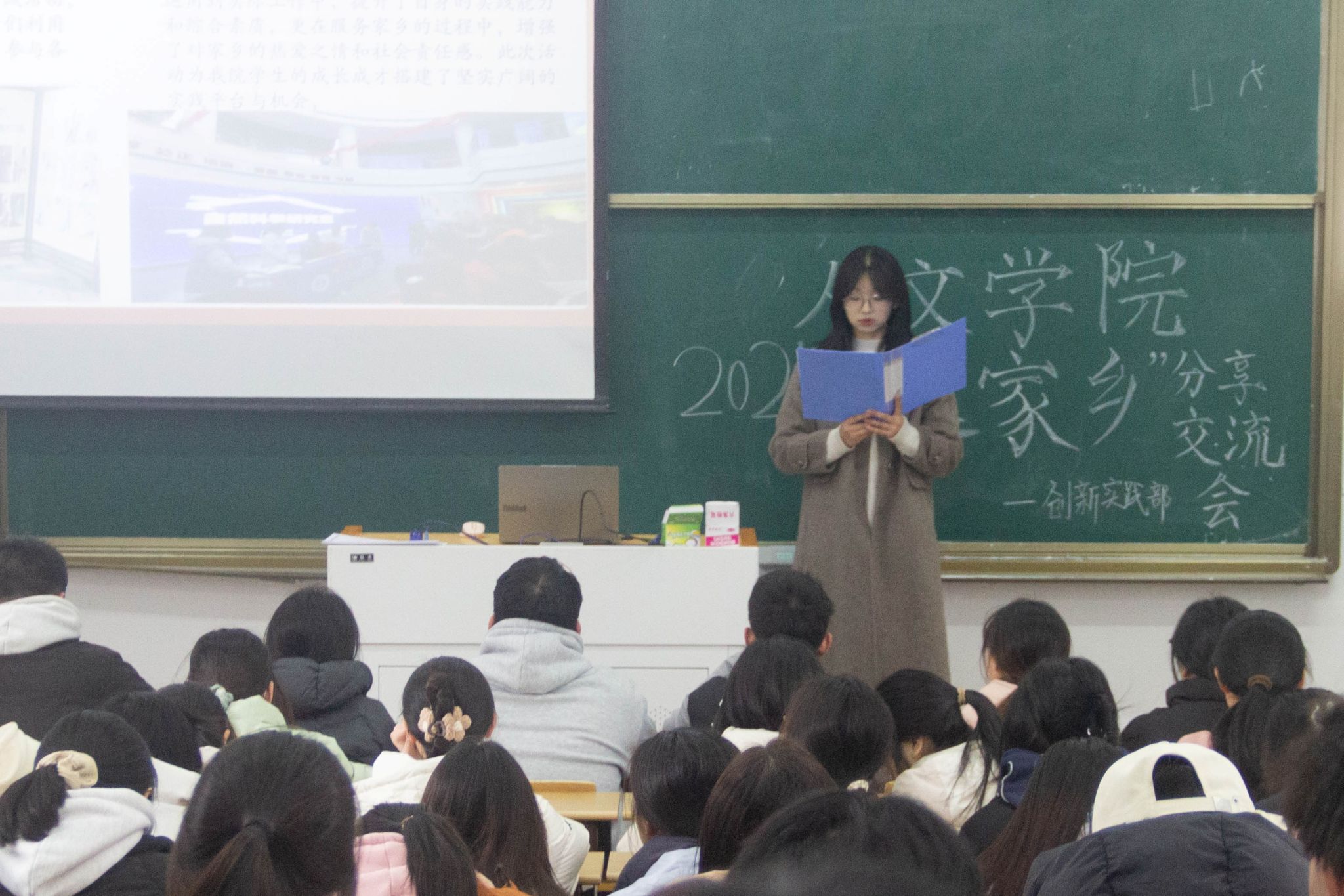 2月26日,suncitygroup太阳成集团于教学楼214教室举办寒假老员工“返家乡”社会实践活动交流分享会。员工会主席潘晨宇、各部门部长、全体“返家乡”学子参加交流分享会,2024级汉语言文学专业文典班王诗瑶主持会议,优秀员工代表依次分享在社会实践期间的所闻所感。