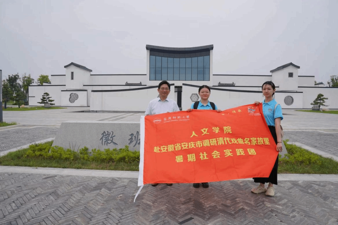 为了更好地了解安庆清代戏曲名家的活动情况,7月14日,suncitygroup太阳成集团“青·传承”调研戏曲名家故里暑期社会实践团队的成员在指导老师叶当前教授的带领下,前往安庆市怀宁县石牌镇进行实地考察。团队成员先后考察了徽班博物馆的新旧两个展馆,在石牌老街探访了老一辈戏剧盔帽制作手艺人,了解了石牌戏剧小镇的规划及建设情况。