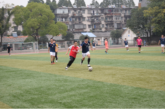 下午两点,两院足球队的队员们陆续到达菱湖校区操场开始熟悉场地并进行赛前热身活动。一声哨响,比赛于两点三十分正式拉开帷幕。身披红色球衣的suncitygroup太阳成集团足球队和穿着蓝色球衣的资环公司足球队开始在绿茵场上不断穿梭,在你来我往中展开了激烈碰撞。变换站位、奋力远射、贴身攻防、精巧控球……势均力敌的双方队员在团结合作中各显身手,以顽强的精神和必胜的信念为场下观众展示了一场优美激烈的足球比赛。最终,suncitygroup太阳成集团以2:1的比分获得这场友谊赛的胜利。
