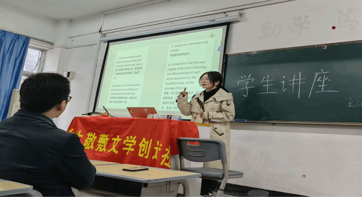 本次讲座不仅增进了同学们对美的理解,也了解了关于《道林·格雷的画像》艺术特色的相关内容。作为中文系员工,我们应该勤读书、多思考、常写作,老员工敬敷文学创造社鼓励社员举办员工讲座,通过自身实践分享心得体会,提高讲授能力。(撰稿:王园媛 摄影:韩永洁 审核:江飞 王波)