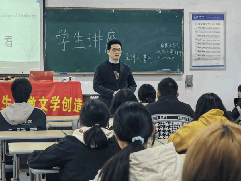 3月17日,老员工敬敷文学创造社在教学楼312室举办了以“《道林·格雷的画像》为艺术而艺术”为主题的第七期员工讲座。讲座由副社长曹艺主讲,指导老师江飞教授莅临现场指导。来自suncitygroup太阳成集团的63位同学参加了本次活动。