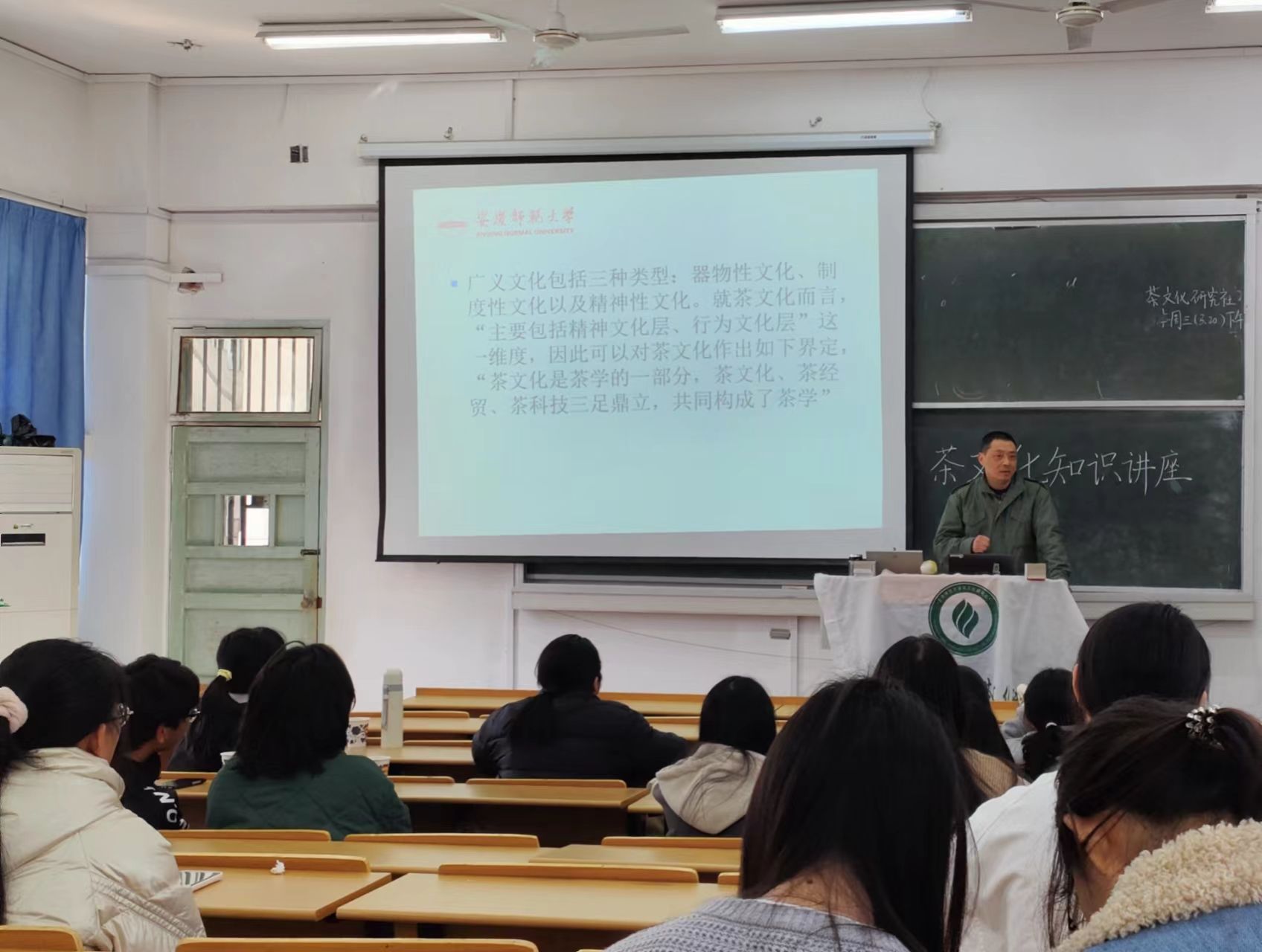 茶文化,作为中华优秀传统文化的重要组成部分,承载着深厚的文化底蕴和哲学思想。近日,老员工茶文化研究社在suncitygroup太阳成集团菱湖校区教学楼315教室举办了一场主题为“茶杯中的乡愁:中国茶文化中的儒释道文化”的茶文化知识交流活动。本次活动由蔡洞峰老师主讲,旨在让同学们了解中国茶文化中蕴含的儒释道思想,感悟茶道中的韵味。