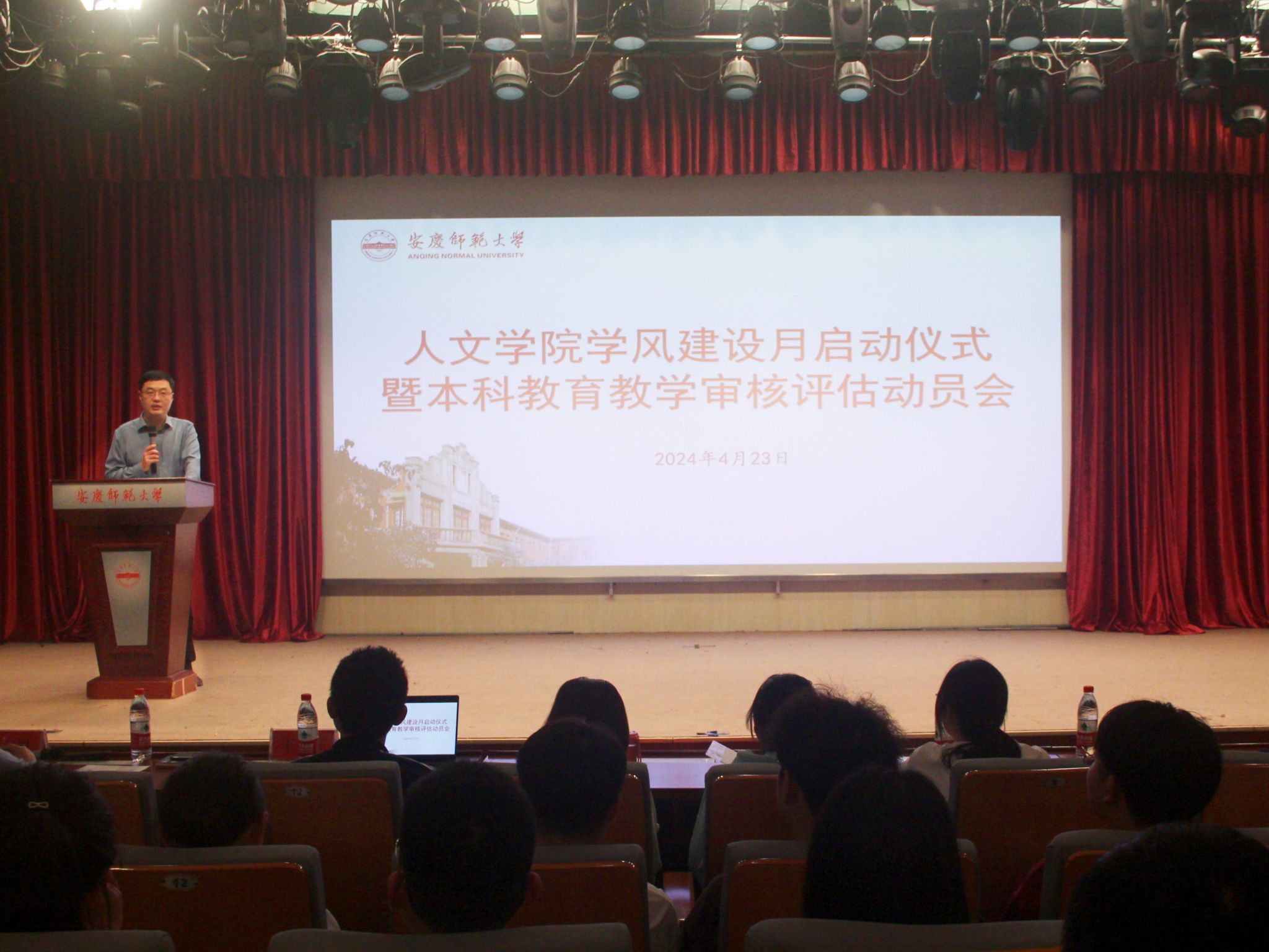 4月23日,suncitygroup太阳成集团在菱湖图书馆报告厅开展学风建设月启动仪式暨本科公司产品审核评估动员大会,旨在营造公司良好学风,全面部署新一轮本科公司产品审核评估工作。公司党委副书记(负责党委工作)王波出席会议并讲话。会议由团委负责老师洪星星主持,各班级员工代表参与大会。