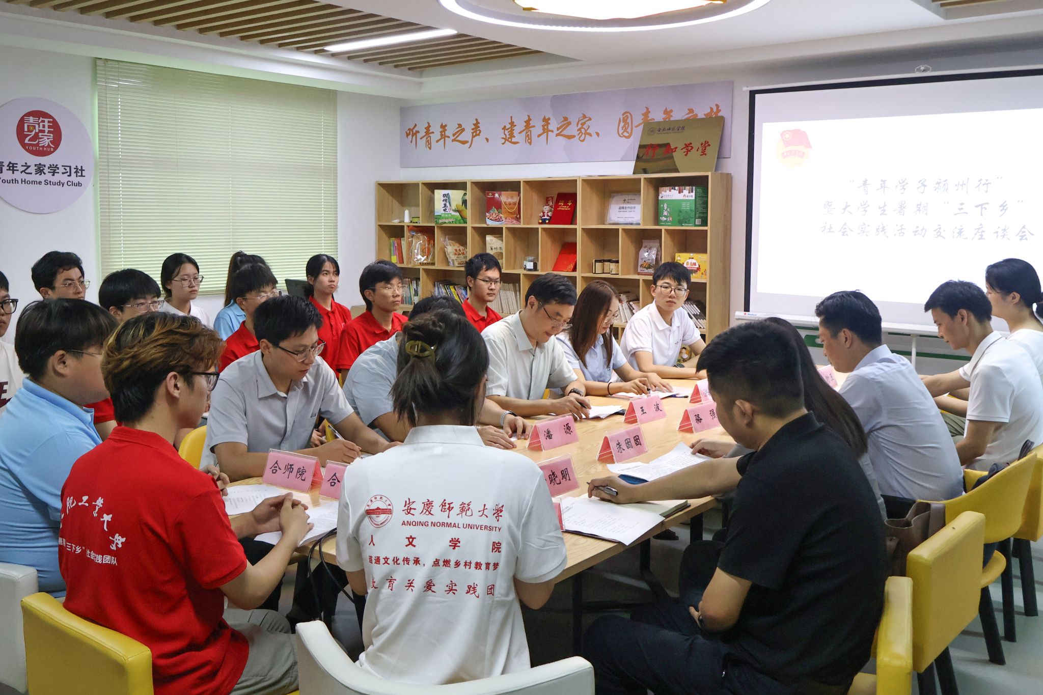会上,朱囡囡介绍了“青年学子颍州行”活动开展情况,员工代表潘晨宇、仇瑾等汇报了团队实践情况和成长收获。