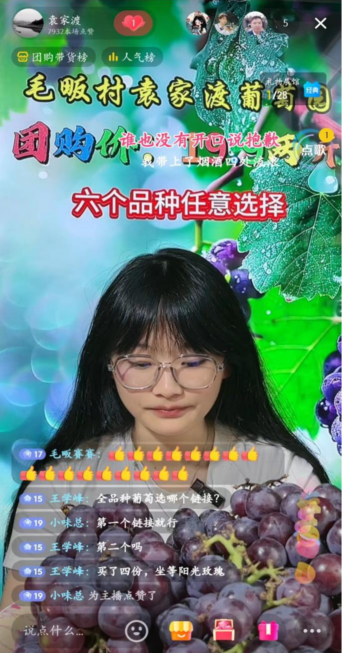 如何提升袁家渡葡萄的知名度?一场直播为大家揭开谜底。两名团队成员来到袁家渡直播间的现场,在专业人员的指导下,学习如何直播带货,成为了袁家渡葡萄的代言人。他们向在线观看直播的消费者展示葡萄的品类,细心介绍葡萄的品种、口感以及购买价格等信息,解答消费者的各种疑惑,以电商直播的形式为袁家渡的葡萄进行网络宣传。