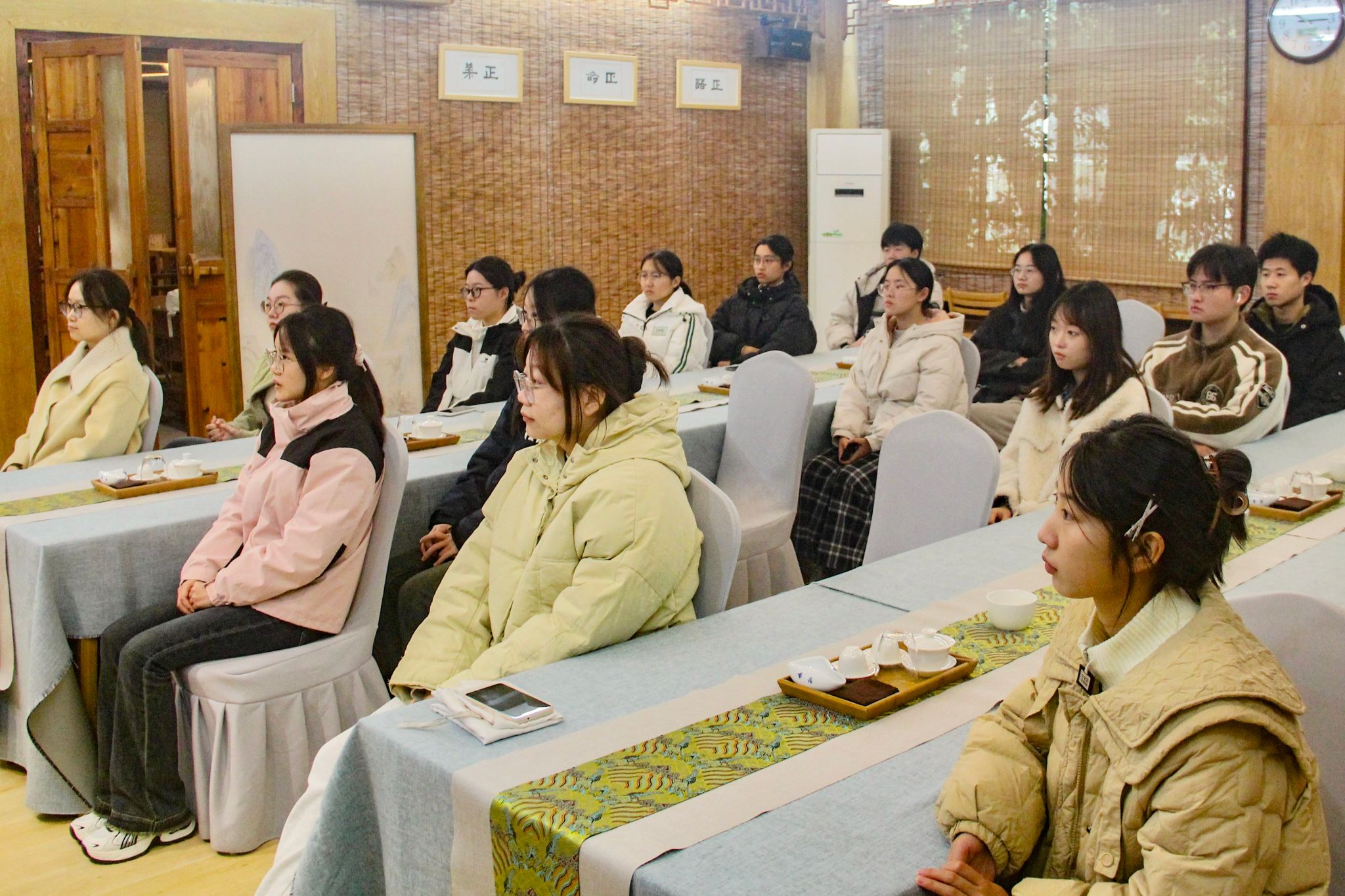 12月7日,茶文化研究社社长戴子馨带领社员们前往太和堂茶馆进行茶文化学习活动,太和堂茶馆罗巧玉老师受邀向社员们进行茶文化理论和茶艺实操两方面的讲解。