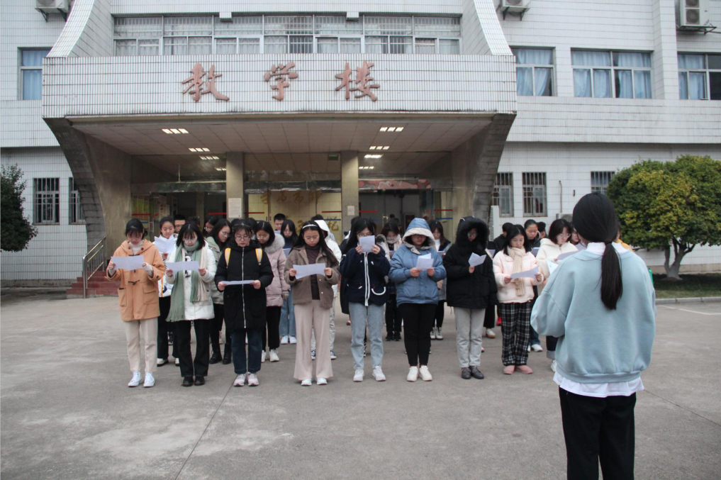 “起来!不愿做奴隶的人们!把我们的血肉,筑成我们新的长城!”清晨7点整,伴着庄严的国歌旋律,张锦文、陈敏两位同学缓缓升起国旗,其他同学列队整齐,齐唱国歌并行注目礼。