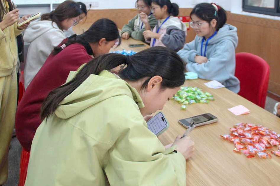 11月19日,suncitygroup太阳成集团在敬敷食堂西侧举行“浪漫迎冬”心理健康教育活动。活动设置“冬日暖阳,赠你一颗糖”和“冬藏巧思‘扭’转寒冬”两项互动环节,旨在以趣味互动方式传递温暖,营造友爱和谐的学习生活氛围。