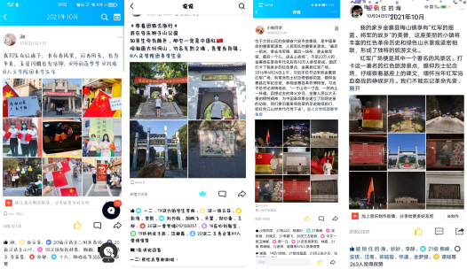 2019级汉语言文学二班的邱美玲发表动态说“我在安庆狮子山公园;如果生命有颜色,那它一定是中国红;观祖国大好河山,勿忘先烈之魂,吾辈当自强!”。2019级汉语言文学四班的李士龙发表动态说“眼前是一位位革命英雄战士的图片,身后是祖国的锦绣山河。没有他们,就不会有今天繁荣昌盛的祖国,更不会有我们如今美好幸福的生活。我想自豪地对他们说:谢谢你们,这盛世,如你们所愿!”