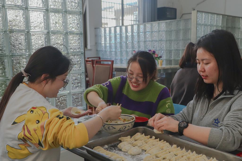 “‘上车的饺子,迎客的面’,不管是节日还是平常,在我们那里,饺子已经成为了餐桌上必不可少的一种食物。”汉语言文学专业2020(5)班的刘炳慧是个地地道道的黑龙江人,她一边包着饺子,一边热情地向大家介绍自己家乡的有趣习俗。