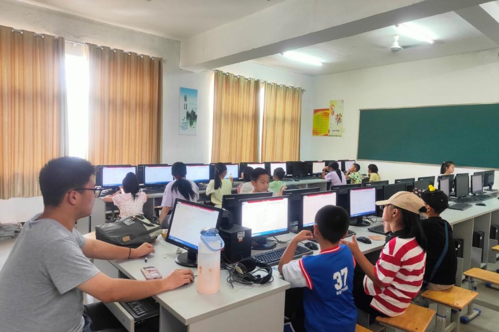 信息技术作为第四次产业革命的关键技术,在我国的生产发展中至关重要。邓小平曾经说过:“计算机要从娃娃抓起。”团队成员薛正阳在少年宫中教授孩子们简单的计算知识,包括基本文档的操作,简单编程等。孩子们在老师的带领下,不断跟进,解决一个又一个知识难点获得新的收获。