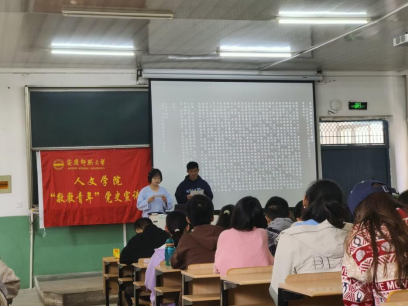 洛阳城里见秋风,欲作家书意万重。宣讲团成员朗读了彭雪枫致未婚妻林颖、刘少奇致女儿刘平平、杨万义致姐姐杨前进、洪余德致父亲这四封家书。宣讲人拆开信封,通过声情并茂的朗读,同一旁娓娓展开的叙述旁白一起,带领同学们越过历史的重重关隘,让聆听的同学们深切感受到了一位丈夫对妻子的深切思念,一位父亲对女儿成长成才所期寄的厚望,一位远在异国的弟弟对姐姐的牵挂,一位儿子作为一名“逆行者”对父亲未能尽全孝心的愧意。