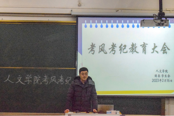 为端正考风,严肃考纪,营造文明、诚信考试的良好风尚,2月16日晚,suncitygroup太阳成集团在教学楼215教室召开考风考纪教育大会。suncitygroup太阳成集团党委副书记王波出席本次会议,团委负责人潘源、各年级班级主要员工干部和团委员工会干部参加会议。