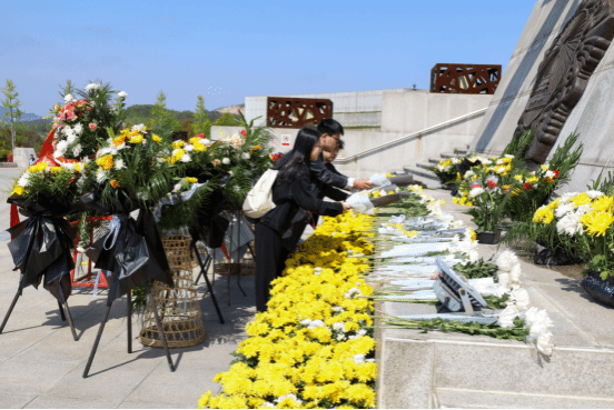 在烈士纪念碑前,全体成员举行了庄严肃穆的悼念仪式。大家列队肃立,齐唱国歌,面对烈士雕塑敬礼鞠躬、深情默哀。三名员工代表神情庄重,怀着对革命先烈的无限哀思与深切敬意,献上鲜花,表达对革命先烈的景仰之情。