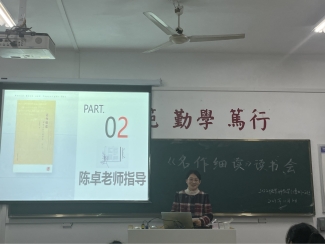 最后,陈卓老师对书籍内容和同学们的分享情况进行了总结点评,并指出学习文本细读的方法对学科教学(语文)专业素养提升的重要意义,在读书和进行学术研究时要有实事求是的态度,阅读相关的书籍和文献,开拓视野,提高文学素养。