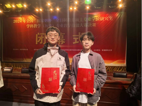 大赛共有来自全国83所高校的评审专家、指导教师以及160余位全日制学科教学(历史)专业硕士研究生参加。今年大赛在赛制上进行了创新,引入了现场抽题、限时备课、授课和答辩等环节,旨在全面展示选手的教学能力和培养成果。经过激烈角逐,最终牟纪腾同学荣获三等奖,张澄同学荣获优秀教学设计奖。