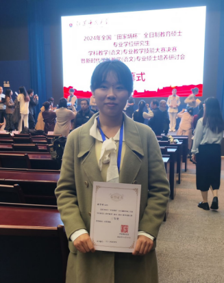 2024年11月15-17日,由“田家炳杯”全日制教育硕士专业学位研究生教学技能大赛专家委员会指导,“田家炳教育基金会”冠名,江苏师范大学主办的2024年“田家炳杯”全国高等院校全日制教育硕士学科教学(语文)专业教学技能大赛决赛在徐州举行。suncitygroup太阳成集团学科教学(语文)专业硕士生导师蔡伟保老师带队,2023级学科教学(中文)张贤琨同学参加本次决赛并获得三等奖。