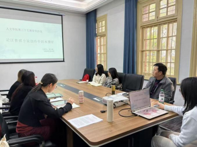 本次学术沙龙分为论文汇报、与谈人谈话、与会员工评议及教师指导四个环节。沙龙伊始由苏心怡同学就《论汪曾祺小说创作中的水情结》进行论文汇报。苏心怡汇报介绍了论文的选题意义和选题背景,简要展示了论文的大纲部分,对水情结的探源、水情结的文本体现、水情结的意蕴等方面进行了简要讲述。汪曾祺小说创作连接古今,为当今浮躁的文学界注入一股清流,为文学创作和现代人格之再造提供新的探索空间。