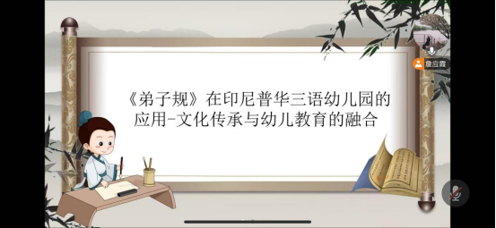 本次学术沙龙分为论文汇报、与谈人谈话、与会员工评议及教师指导四个环节。沙龙伊始由詹应霞同学就《<弟子规>在印尼普华三语幼儿园的应用-文化传承与幼儿教育的融合》进行论文汇报。论文介绍了《弟子规》作为中国传统的启蒙教育经典,近年来在海外华文教育中逐渐受到重视。印尼作为东南亚华人聚居的重要国家,其华文教育的发展具有独特的历史背景和文化融合特征。论文以詹应霞同学所在实习单位印尼普华三语幼儿园为研究对象,探讨《弟子规》在该园教学实践中的应用情况,分析其应用效果与问题,并给予可行性建议。
