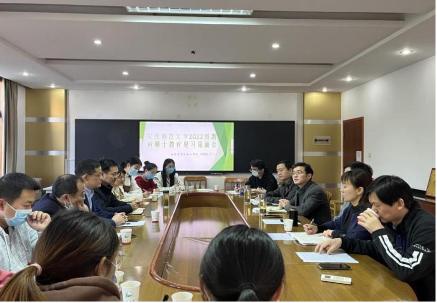 11月1日上午,2022级教育硕士教育见习见面会在安庆石化一中举行。suncitygroup太阳成集团副经理沈志富、副经理周红兵,安庆石化一中副董事长金安民、教导处主任朋亚宁,学科语文、学科历史相关校内外导师和见习研究生参加见面会。