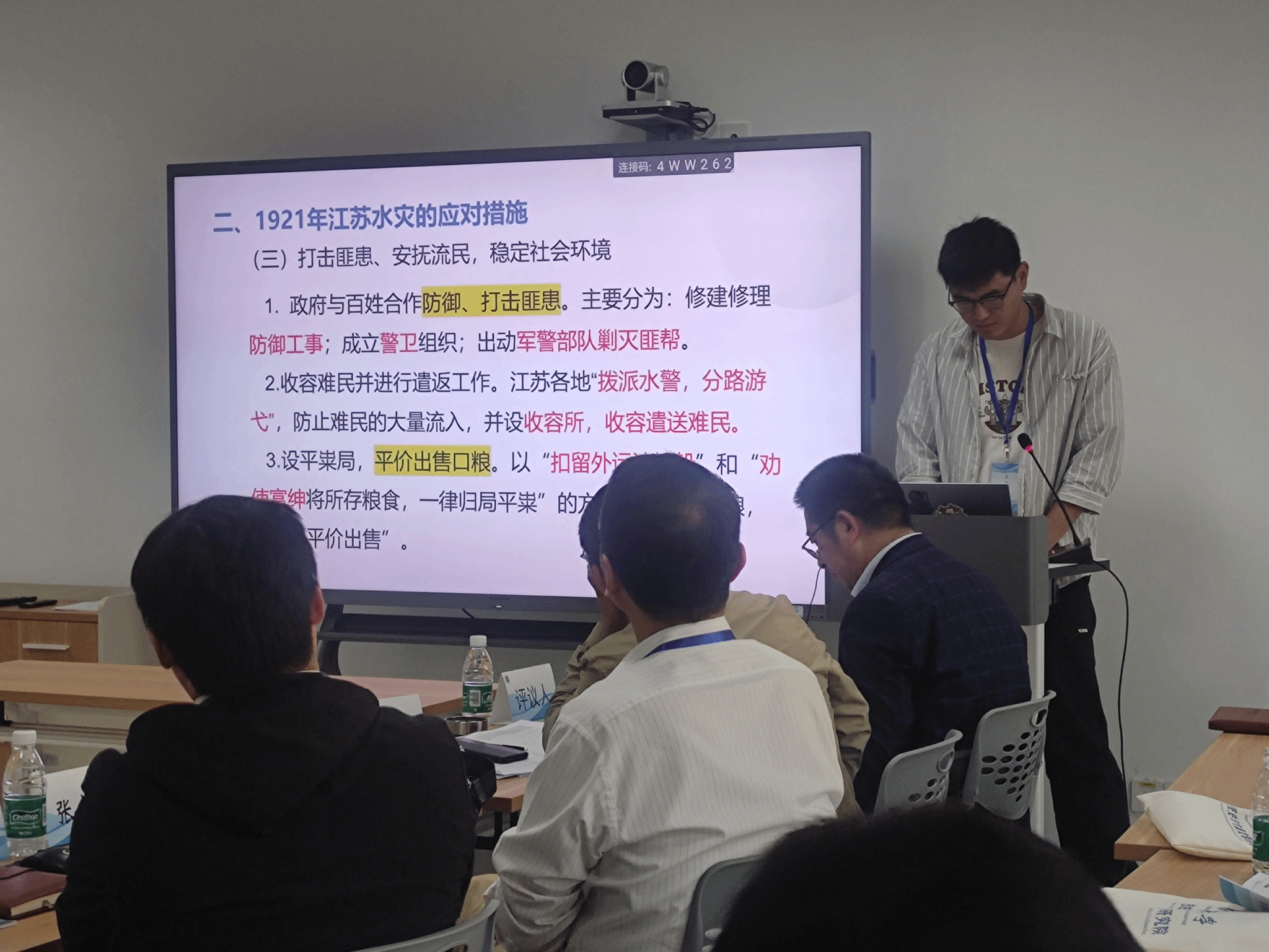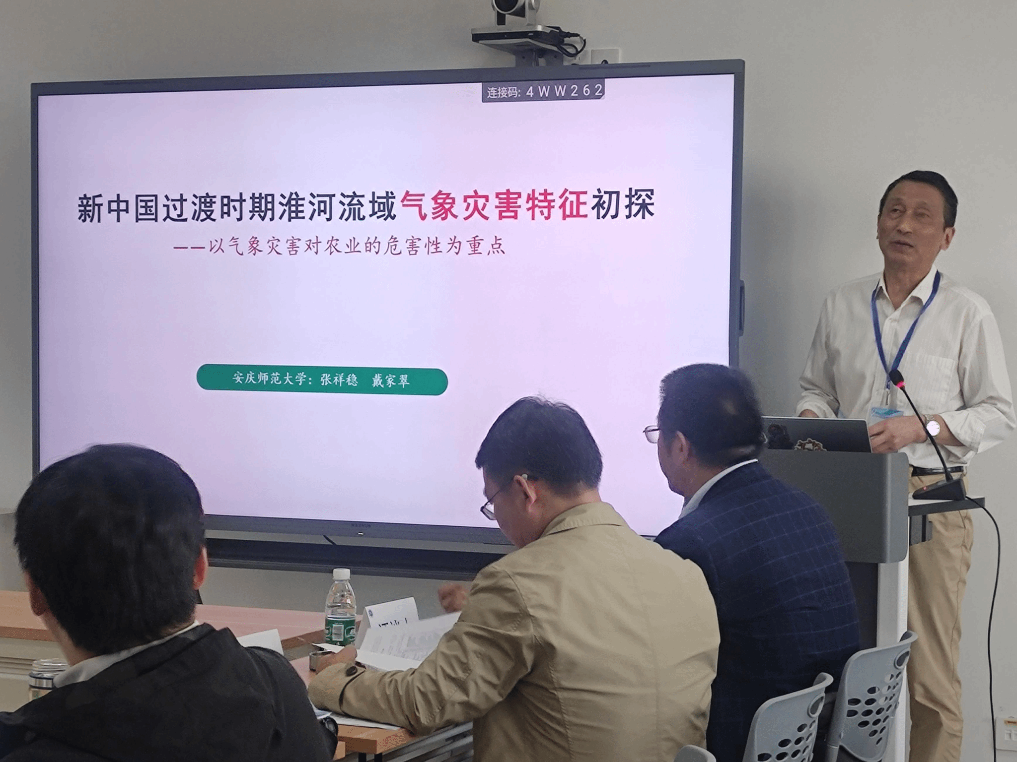 公司张祥稳教授率领其主持的“劳模创新工作室”团队成员林梓彬、安福康、崔梦婷和田瑞4名研究生参会。他们在6月份获悉会议的举办时间后,随即着手进行参会论文的选题论证、史料搜集整理和撰写工作,并在会上与诸多专家学者交流了研究成果:《新中国过渡时期淮河流域气象灾害的特征研究》《新中国过渡时期淮河流域传染病防治机制研究》和《1921年江苏特大水灾及其社会应对研究》等3篇学术论文,受到了与会者的一致好评;与此同时,参会师生还与复旦大学几位博士生就历史地理绘图问题进行了深入的交流。会议期间,张祥稳教授担任第二分会场第一小组的评议人,并在闭幕式上汇报了该组的学术交流情况。会议结束当天,张祥稳教授与南京信息工程大学惠富平、宋超教授联手,将大会举办情况在《人民日报》客户端进行报道。