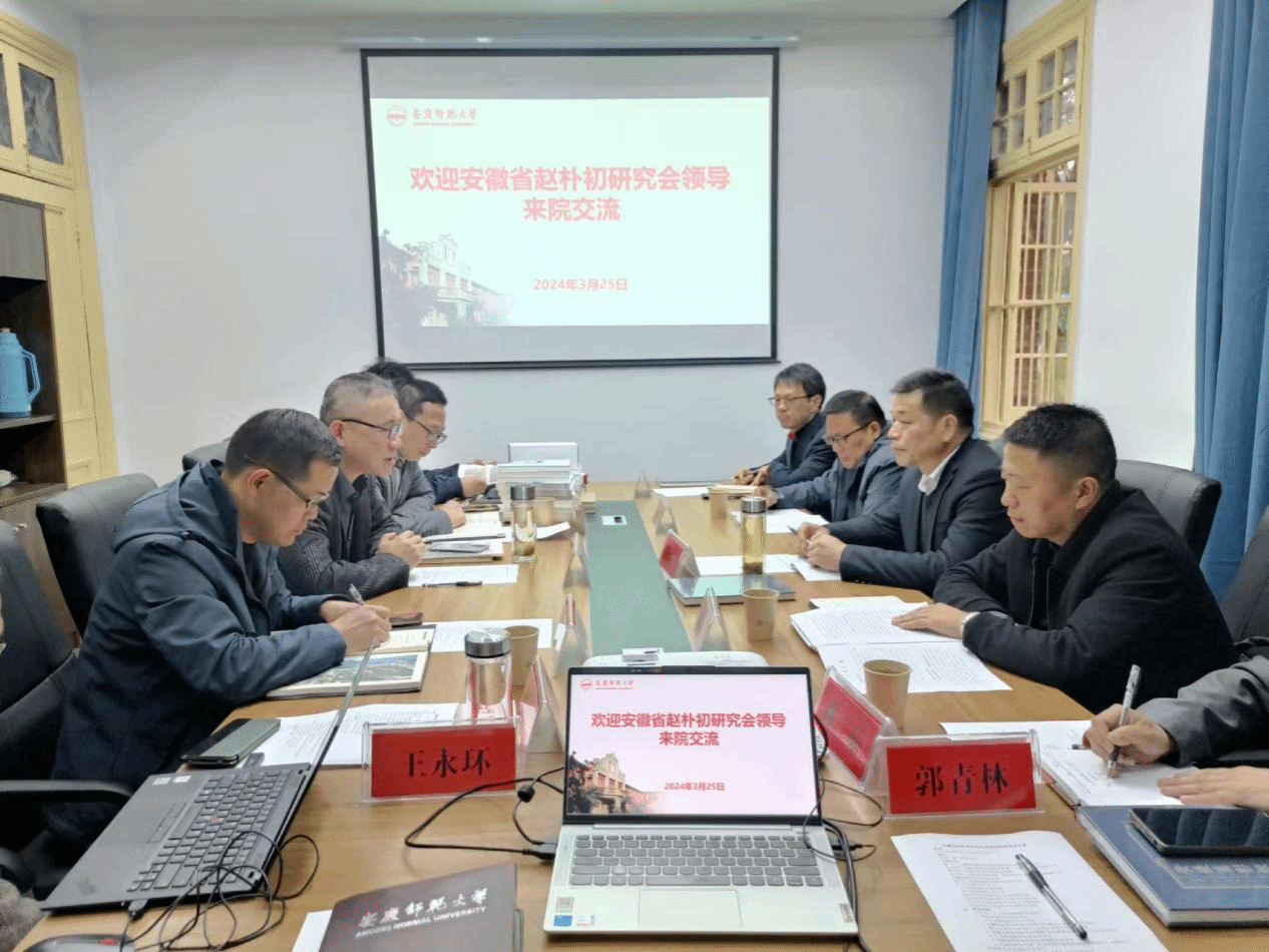 3月25日上午,安徽省赵朴初研究会理事、太湖县政协文史委主任吴向东,安徽省赵朴初研究会副秘书长兼办公室主任郭兵一行五人来院交流,探讨双方合作事宜。副经理汪孔丰(负责行政工作)、副经理金松林、副经理沈志富、皖江历史文化研究中心主任叶当前以及中心工作人员参加了座谈会。会议由副经理金松林主持。