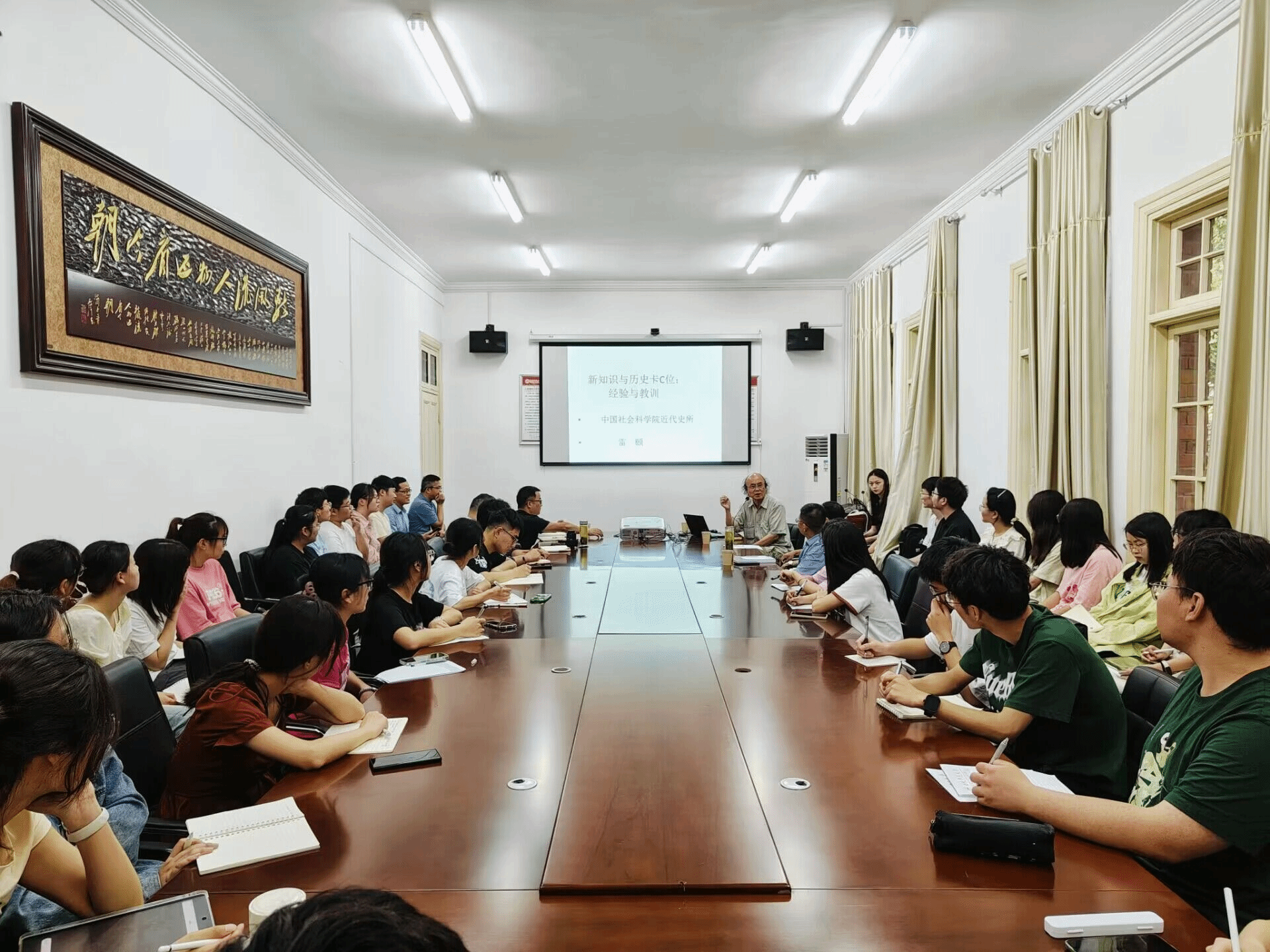 雷颐先生学贯中西,对中国历史文化怀有强烈的关切之情。讲座以近代中国因错失重要历史机遇而被西方和日本赶超为主线,将郑和下西洋之后实施海禁与哥伦布开启的大航海时代进行对比,分析当时中国对传统知识的固守以及接受新知的艰难,与西方和日本形成强烈反差。他以近代中国与日本两国的不同命运为例,将新知的接受与否同国运兴衰联系起来。他在讲座中既回顾历史,又关怀现实,提醒青年员工要努力接受新知,把握住世界第三次信息革命浪潮。讲座结束后,雷先生同与会师生就中国古代社会性质、新旧知识的冲突与挑战等问题进行了深入交流,现场气氛热烈。