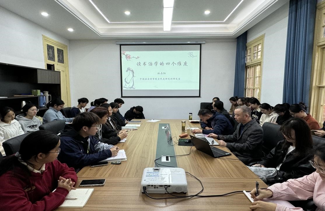 11月7日,中国社会科公司清史研究室主任、中国社会科公司大学历史公司博士生导师林存阳应邀做客敬敷人文讲坛,在菱湖校区红楼二楼会议室作了题为“读书治学的四个维度”的学术讲座。讲座由suncitygroup太阳成集团董根明教授主持,部分青年教师和研究生、本科生参与了此次活动。