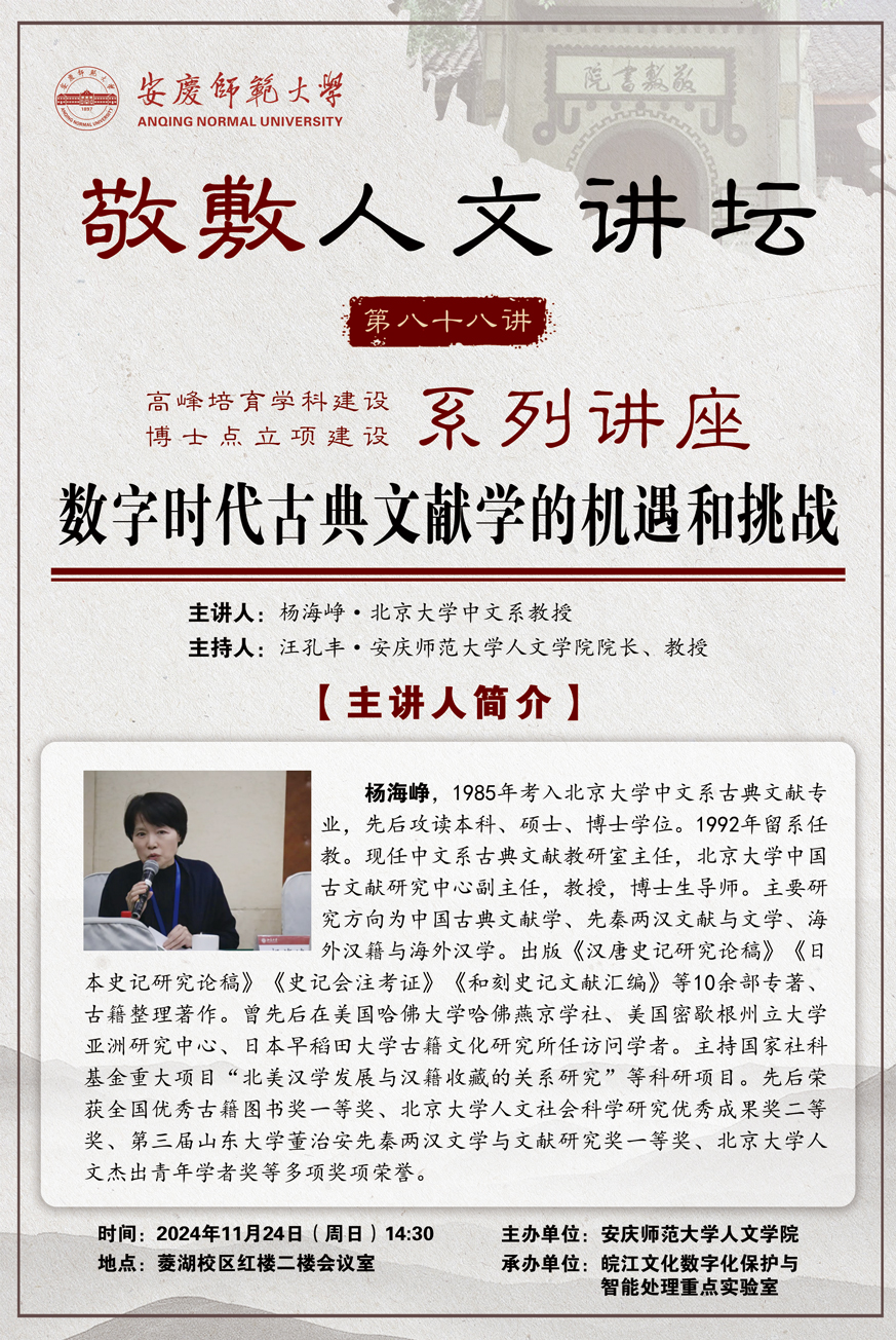 下一篇:【敬敷人文讲坛(87)】数字人文视野下的古籍数字化