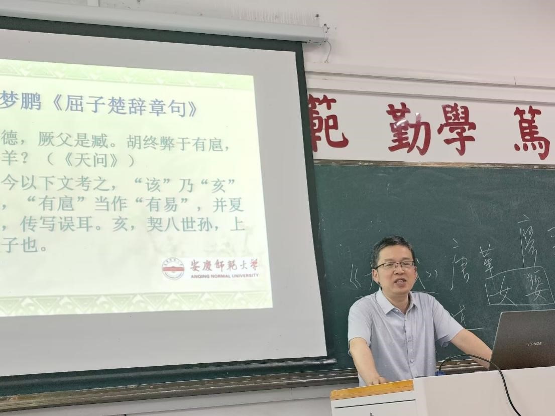 5月20日下午,第34期菱湖学术沙龙在304教室举行,suncitygroup太阳成集团谢模楷教授作“屈原及其楚辞研究的困境与思考”的报告,suncitygroup太阳成集团赵长杰博士担任主持人,2023级文典班全体同学聆听了谢老师的精彩演讲。