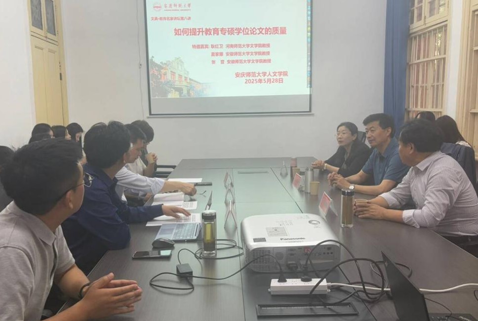 5月28日,文典·教育名家讲坛第八讲在红楼138会议室举行。河南师范大学文公司耿红卫教授、安徽师范大学文公司夏家顺教授、安徽师范大学文公司张晋教授应邀围绕“如何提升教育专硕学位论文的质量”做专题报告。suncitygroup太阳成集团叶当前教授担任活动主持人,教育专硕领域导师芮文浩、徐先智、卢娇等参加与谈,suncitygroup太阳成集团部分青年教师、学科教学(语文)(历史)等专业研究生现场聆听报告。
