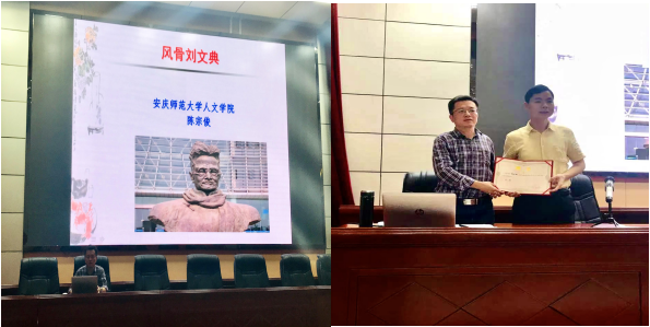 5月14日下午,应铜陵公司文学与艺术传媒公司邀请,公司中国现当代文学专业硕士研究生导师陈宗俊教授赴该院做了一场题为《风骨刘文典》的学术讲学。该院汉语言文学、中文师范两个专业的全体员工和部分教师共100余人聆听了讲座。该院经理陈昌文教授主持讲座,并向陈宗俊教授颁发了客座教授聘书。