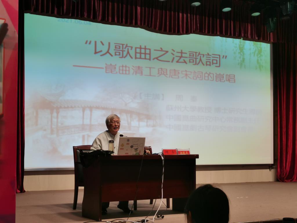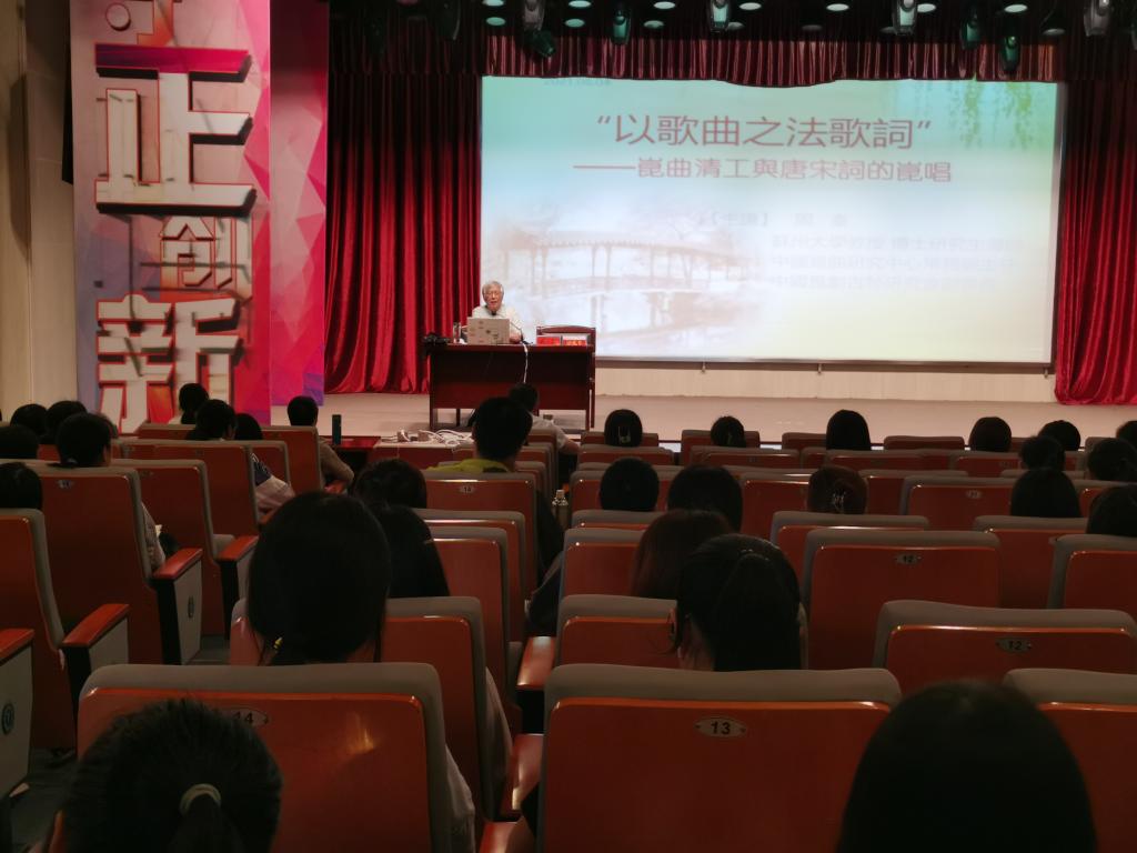 6月4日下午,应suncitygroup太阳成集团邀请,苏州大学博士研究生导师周秦教授在菱湖校区图书馆报告厅做了题为“‘以歌曲之法歌词’——昆曲清工与唐宋词的昆唱”的讲座。讲座由suncitygroup太阳成集团副经理汪孔丰教授主持,一百五十多位师生出席此次讲座。