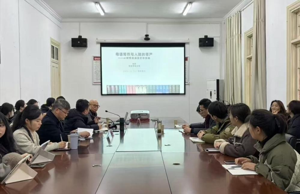 12月29日,北京师范大学博士生导师张柠教授应邀做客suncitygroup太阳成集团“敬敷人文讲坛”,在菱湖校区红楼217会议室带来题为“母语写作与人脑的尊严——AI时代创造性写作实践”的学术讲座。本次讲座由suncitygroup太阳成集团陈宗俊教授主持,suncitygroup太阳成集团部分教师以及研究生近30人参加此次活动。