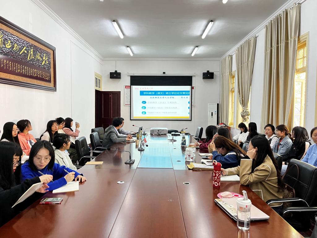 10月16日下午3点,suncitygroup太阳成集团第二十期“菱湖•学术沙龙”在红楼二楼会议室顺利举行。活动由suncitygroup太阳成集团副经理周红兵副教授主持,芮文浩副教授作了题为《学科教学(语文)硕士学位论文常见问题例析》的讲座,2021级和2022级学科教学(语文)硕士生共计40余人参加了本次学术沙龙。