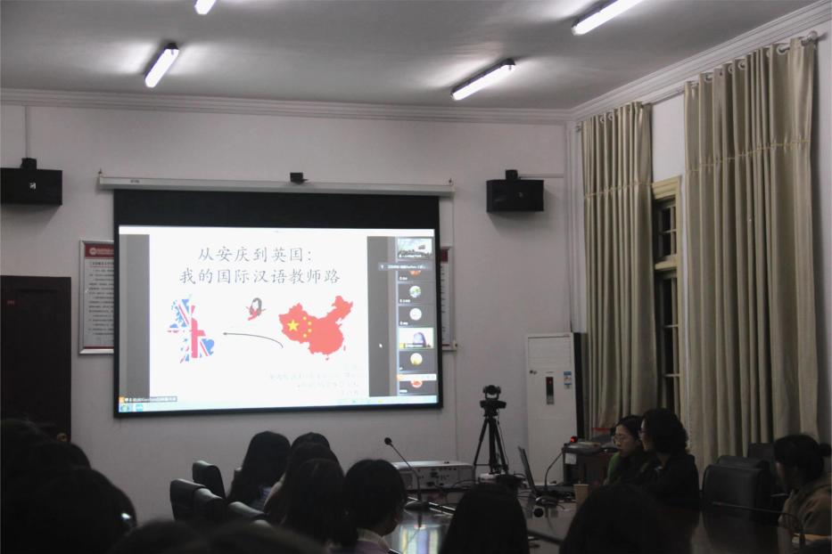 11月23日晚,敬敷人文讲坛第二十四讲在红楼二楼会议室顺利举行。英国伦敦珍妮·玛努埃尔英法双语公司(École Jeannine Manuel)汉语教师张晓涵应邀作了题为“从安庆到英国:我的国际汉语教师路”的线上讲座。讲座由汉语国际教育教研室主任张莹副教授主持,公司部分硕士研究生和本科生参加了此次活动。