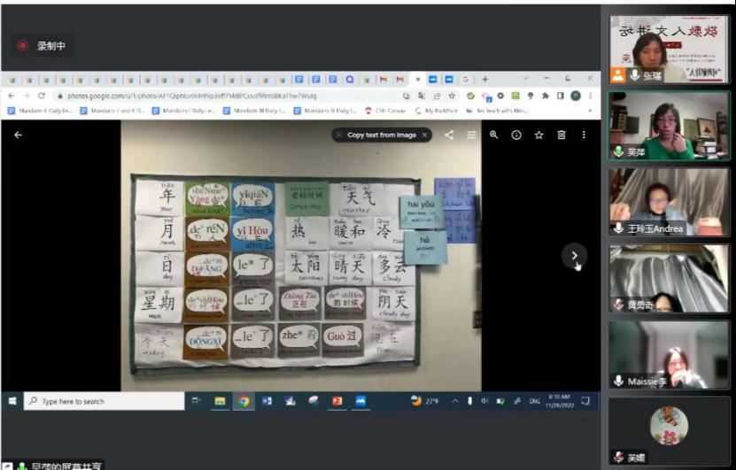吴萍老师分享了她在北美多年从事国际中文教育的经验,从如何设计课堂,如何选取合适的教学材料,如何创作有趣、有深度的故事,如何安排课堂教学活动,如何进行课堂管理与作业考核以及科技工具的使用等方面介绍了“可理解输入”理论在国际中文教学课程设计和课堂中的实际应用。为了让大家能够更好地感受美国中学中文课堂教学的氛围,吴萍老师还通过线上视频的方式与公司师生进行了国际中文教育的课堂模拟。在一个个有趣的小活动中,讲座的气氛被推向高潮。