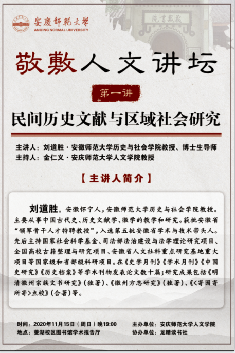 讲座预告:【敬敷人文讲坛①】民间历史文献与区域社会研究