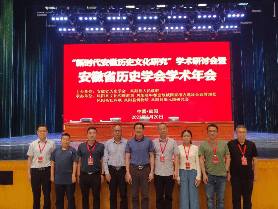5月19日至21日,“新时代安徽历史文化研究”学术研讨会暨安徽省历史学会2023年学术年会在安徽凤阳县召开。本次年会由安徽省历史学会、凤阳县人民政府主办,凤阳县文化旅游局、凤阳明中都皇故城国家考古遗址公园管理处、凤阳县社科联、凤阳县博物馆、凤阳县朱元璋研究会承办。省社科联党组书记、常务副主席李兵,秘书长、一级调研员韩修良,省历史学会会长李琳琦,凤阳副县长张艳,南京工业大学郭华瑜教授,南京大学夏维中教授等出席会议。来自省内外十余所高校、科研院所、出版单位以及凤阳本地学者160余人参会,其中公司近十位教师应邀与会。