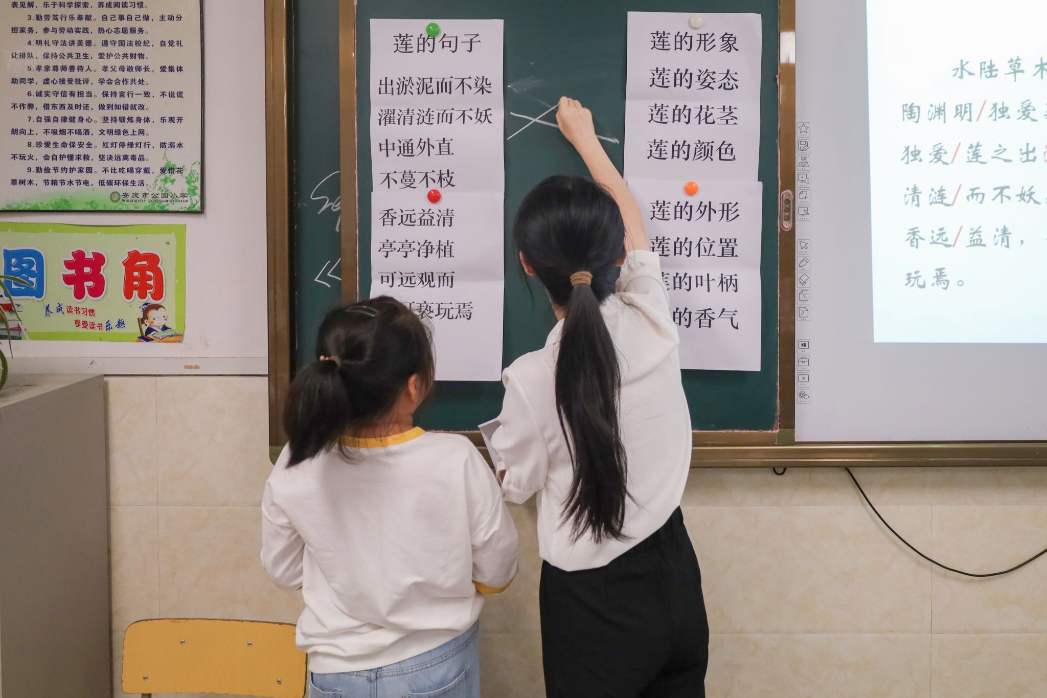 会后,与会人员旁听了学科教学(语文)方向2022级研究生丁雨琛面向五年级员工关于“中华传统文化经典导读”的初次授课。