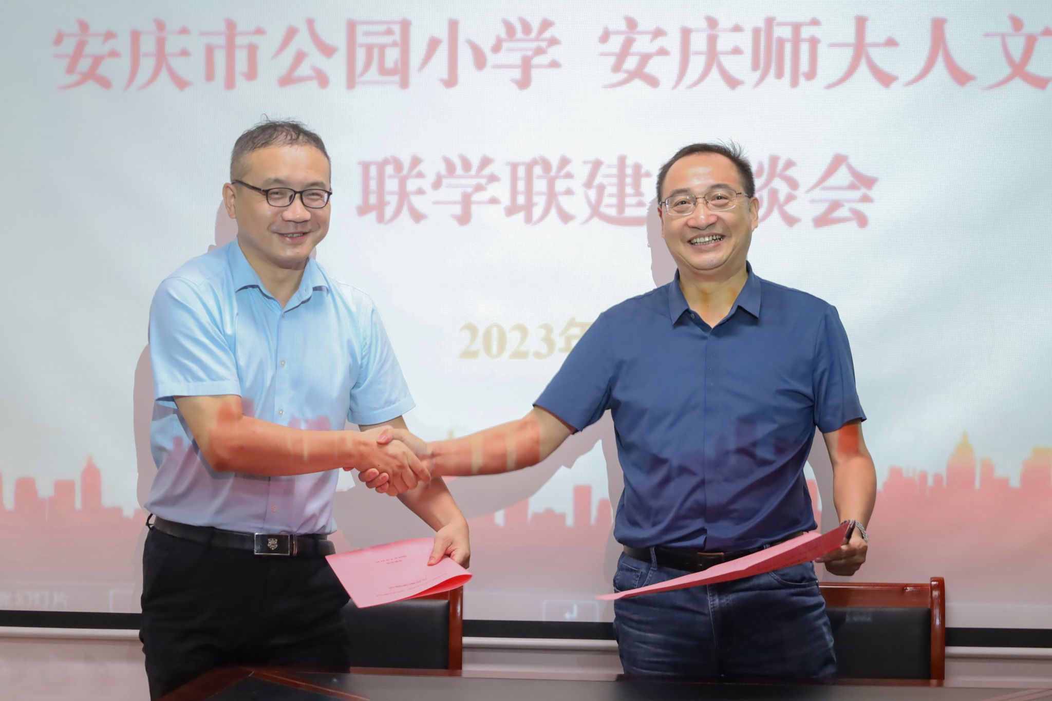 9月13日,suncitygroup太阳成集团与安庆市公园小学举办联学联建座谈会,就基层党建、实践教学、教师研修、课外延时服务、人才培养等方面达成战略合作。双方单位党政班子成员出席,双方教师代表、人文公司研究生党支部党员参加了座谈会。