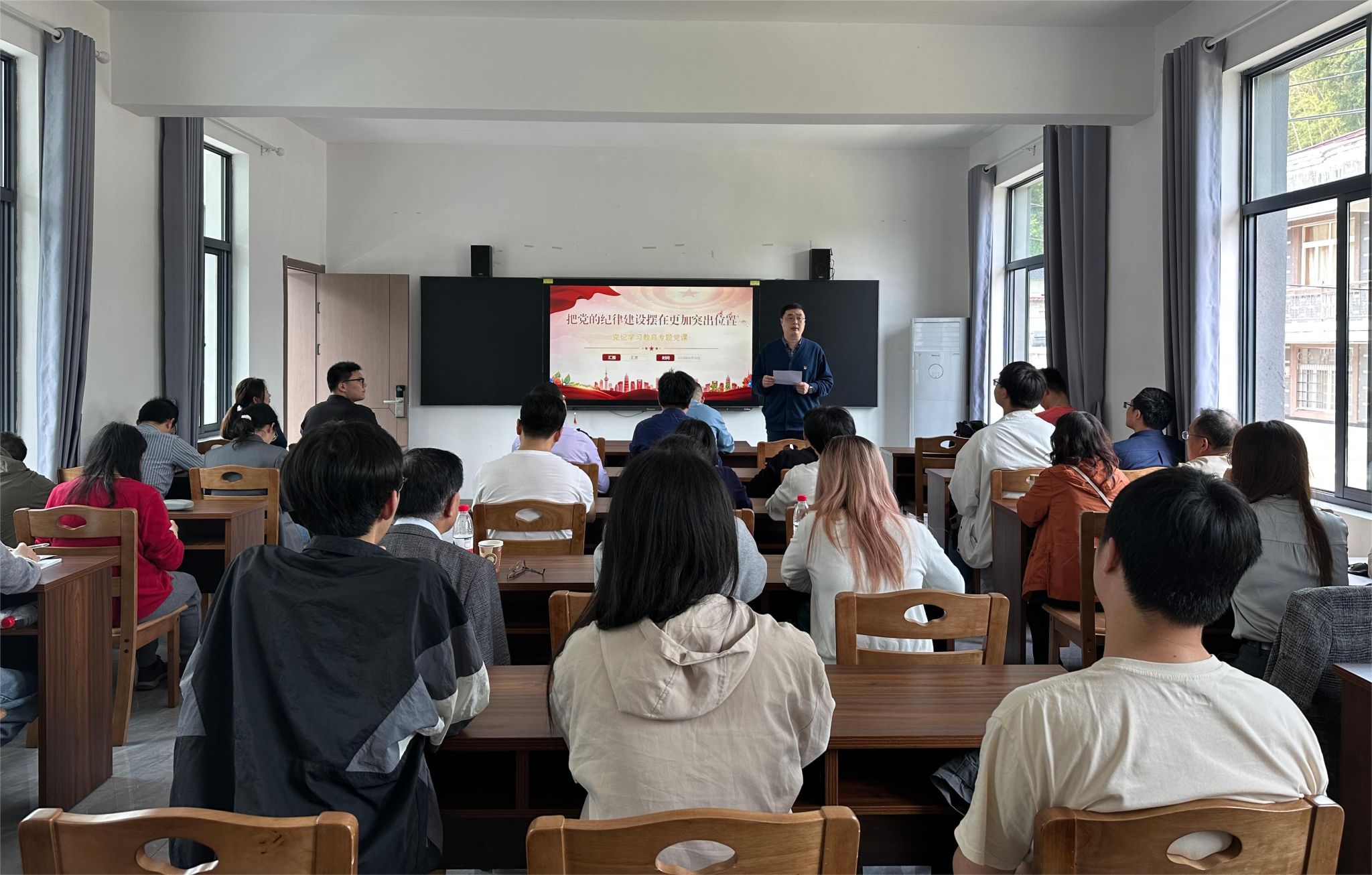 党委副书记王波以“把党的纪律建设摆在更加突出位置”为题作党纪学习教育专题党课。他从“弄清为什么要加强党的纪律建设”和“弄清如何加强党纪学习教育”两个方面详细分析了开展党纪学习教育的重要意义和实现手段。他强调,我们党是靠革命理想信念和铁的纪律组织起来的马克思主义政党,纪律严明是党的光荣传统和独特优势,是我们不断战胜各种困难挑战、不断从胜利走向新的胜利的重要保证。开展党纪学习教育,对于全党全面深刻了解党的光辉历史、传承党的优秀品格,解决党员干部中存在的对党规党纪不上心、不了解、不掌握等问题,以纪律建设为突破口,解决大党独有难题、健全全面从严治党体系,推动党和国家事业向前发展,意义重大。全体党员要以永远在路上的执着深入推进全面从严治党,严守对党绝对忠诚的信念,弘扬党的优良传统,汇聚推动高质量发展的精神合力。