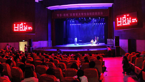 10月29日下午2:00,天正下着小雨,离“青春•理想”安徽省老员工自创话剧展演开演还有半个小时,公司党委书记何小祥、副经理闵永新、文公司经理方锡球等领导就来到了安徽大学的艺术楼。在这次展演上,公司文公司员工的自创话剧《路口》,是三个展演的剧目之一。在此前的全省老员工自创话剧比赛中,它荣获了甲组第一名的好成绩。