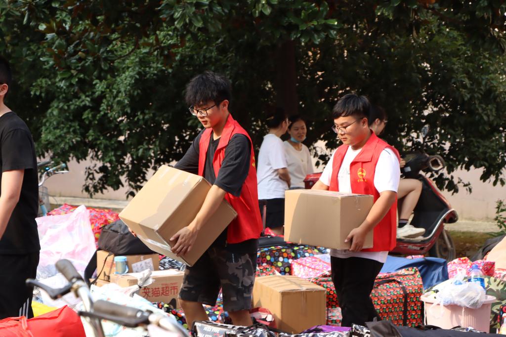 因公司融合和专业调整,这学期历史学专业员工需从龙山校区搬迁至相距15公里的菱湖校区内学习生活。由于路途较远,行李较多,作为安徽省党建工作样板支部,suncitygroup太阳成集团员工第二党支部的志愿者们积极亮出党员身份,主动穿上“红马甲”,当起了同学们的“行李搬运工”。