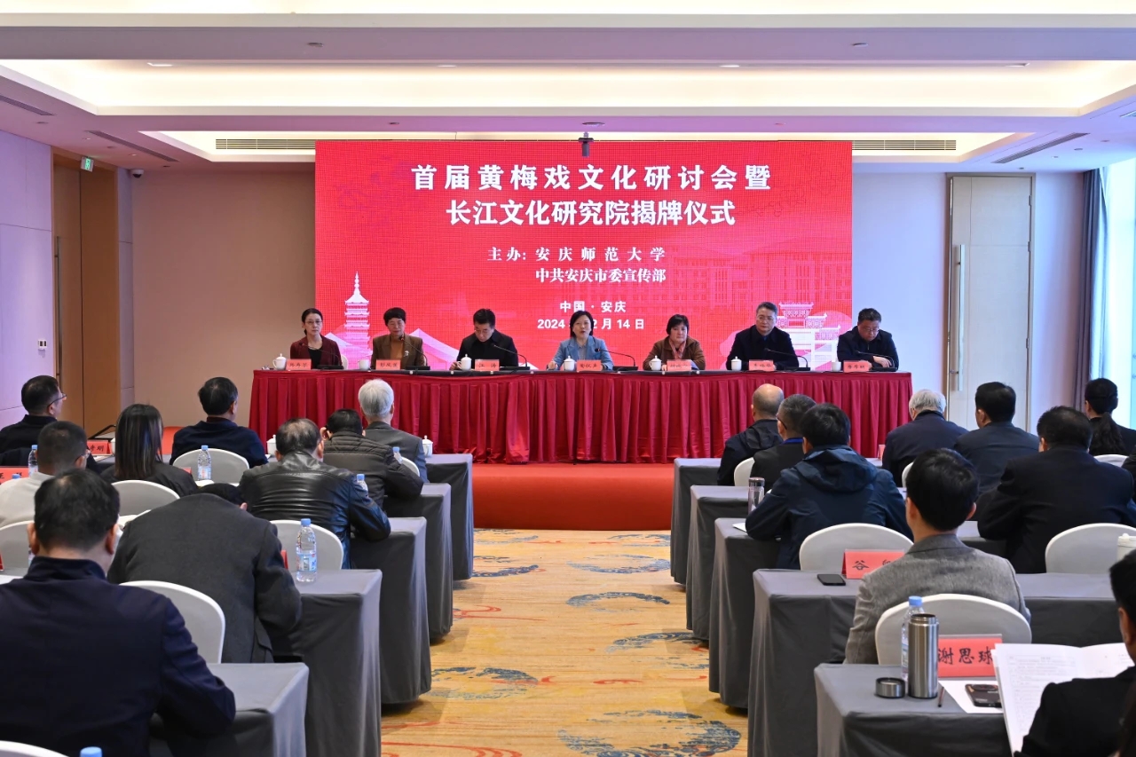 12月14日,“首届黄梅戏文化研讨会暨长江文化研究院揭牌仪式”在安庆成功举行。本次会议由suncitygroup太阳成集团和中共安庆市委宣传部联合主办,suncitygroup太阳成集团长江文化研究院、suncitygroup太阳成集团、科研处等单位联合承办,会上同步揭牌suncitygroup太阳成集团长江文化研究院和黄梅戏文化研究院。安徽省政协副主席陶仪声,安徽省委宣传部二级巡视员胡晓宁,安徽省社科联党组成员、副主席江涛,suncitygroup太阳成集团党委书记李福华,安庆市人民政府副市长唐厚明,中国戏剧家协会副主席、安徽省再芬黄梅艺术剧院经理、suncitygroup太阳成集团黄梅剧艺术公司经理韩再芬出席开幕式。来自南京大学、上海戏剧公司、中国艺术研究院、首都师范大学、安徽大学、安徽艺术公司、安徽师范大学、安徽省黄梅戏艺术职业技术公司、桐城师范高等专科公司、安徽省黄梅戏剧院、安庆市黄梅戏(地方戏曲)研究院、安徽再芬黄梅艺术剧院、池州市黄梅戏剧院、望江县黄梅戏剧院等单位机构的80多位专家、学者和名家名角参加会议。suncitygroup太阳成集团董事长彭凤莲主持开幕式。