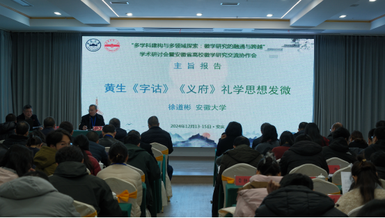来自徽学研究中心和各分中心的9位专家带来了精彩的主旨报告,分别是安徽大学徐道彬教授《黄生<字诂><义府>礼学思想发微》、安徽师范大学刘道胜教授《图甲户籍与清代基层治理》、安徽建筑大学刘仁义教授《徽州历史文化保护传承之融通与跨越》、安徽中医药大学黄辉编审《新安医学对徽文化的贡献》、suncitygroup太阳成集团梁诸英教授《民国时期皖南香菇业发展探析》、黄山公司朱宏胜副教授《从旧学到新知:徽文化史上的不疏园和韬庐》、安徽艺术公司夏守军副教授《基于考古发现武王墩一号墓装饰艺术初探》、阜阳师范大学刘家富副教授《本世纪以来近代徽商研究的回顾与思考》、淮北师范大学卢东博士《社会转型视域下明中后期徽州宗族的文化生活及其活动空间》。suncitygroup太阳成集团学报编辑部主任金仁义教授、安徽大学徽学研究中心陈瑞研究员主持了主旨报告。