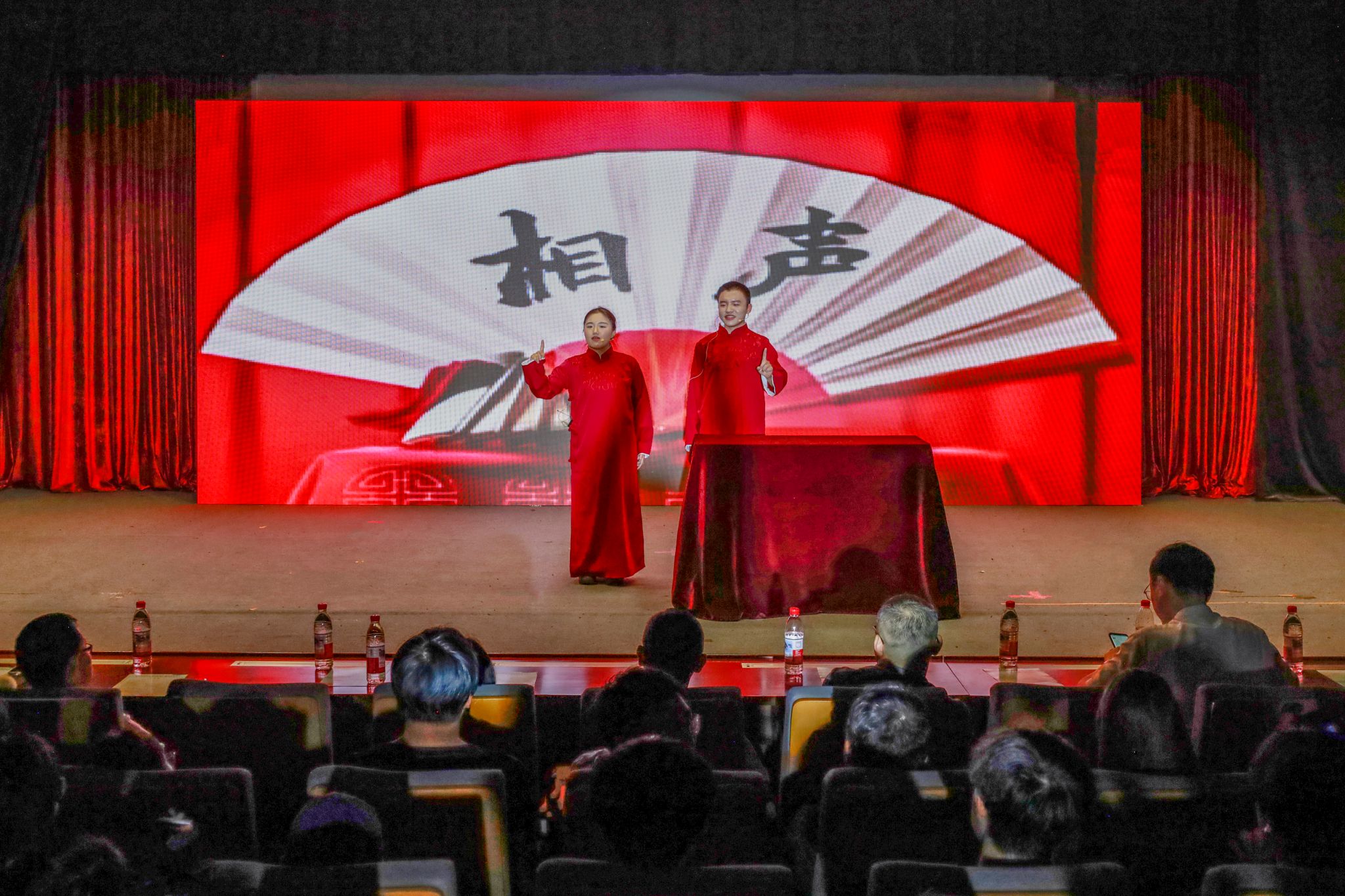 活力四射、动感十足的《Feel special》开场舞表演配合绚丽的灯光,点燃现场气氛;器乐演奏、古典舞串烧《苏公堤》将民乐与中国舞结合,让在场师生仿若置身江南水乡;朗诵《红铁》表演者用铿锵有力的声音讲述了战士们奋战抗敌的动人故事,将观众的思绪带入到战火纷飞的年代;小品《你睡了没》以幽默搞怪的表演手法向观众展示熬夜对身体的危害,让观众们在欢声笑语中明白健康的含义。相声、双簧……晚会现场,多种曲艺表演形式轮番登场,让观众在欢笑声中体味了语言艺术的魅力,见证了青年学子的青春风貌。