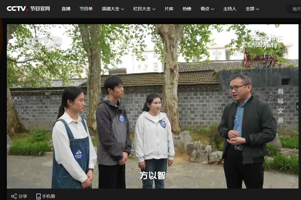 近日,由公司suncitygroup太阳成集团师生参与录制的文化专题节目《跟着书本去旅行》在央视科教频道(CCTV-10)正式播出。本期节目聚焦桐城文派,深入安徽桐城实地取景,通过学术解读与现场探访,生动呈现了该流派的历史脉络。